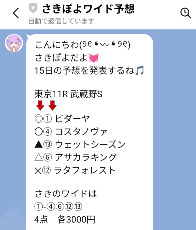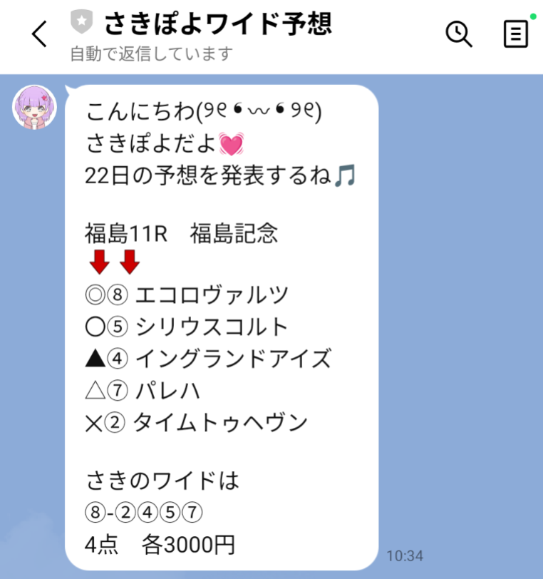 競馬歴5年のさきぽよが 毎週重賞レースの予想をLINEで配信します。 買い目はワイドがメインで 的中率を重視する方に 特におすすめ👍 |