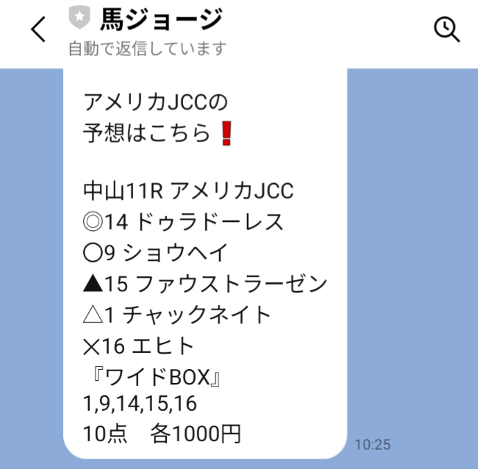 1月25日(日) 【アメリカJCC】 ワイド的中 337,200円 獲得🎯 |