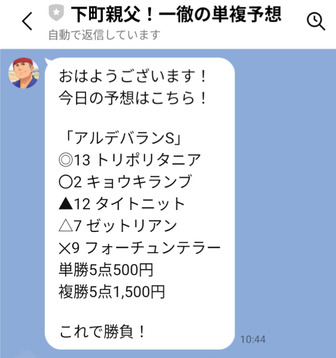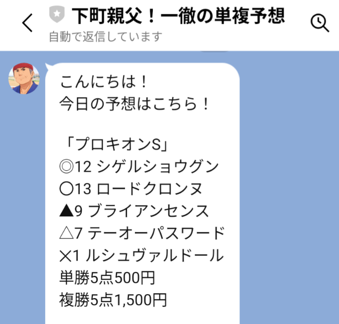 \下町親父!一徹の単複予想を受け取る/