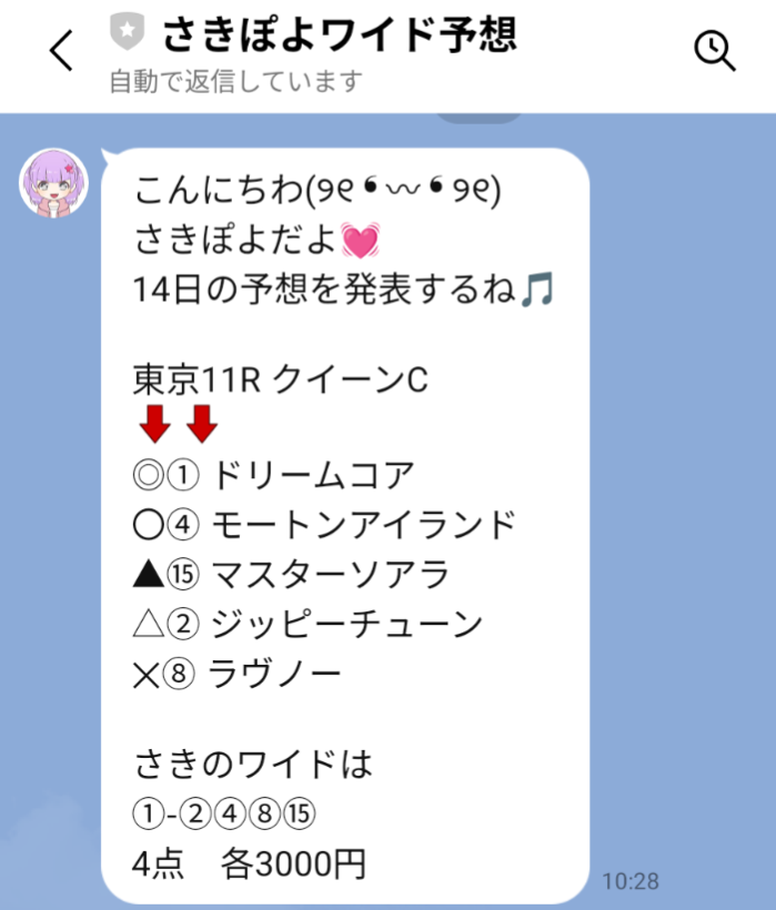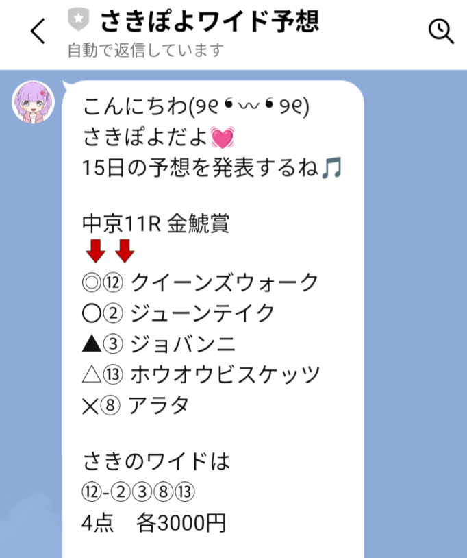 競馬歴5年のさきぽよが 毎週重賞レースの予想をLINEで配信します。 買い目はワイドがメインで 的中率を重視する方に 特におすすめ👍 |