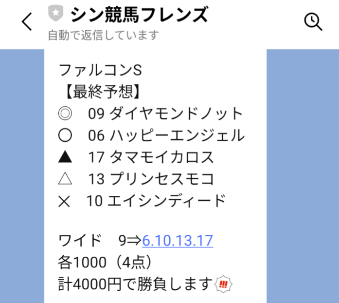 \シン競馬フレンズの予想を受け取る/